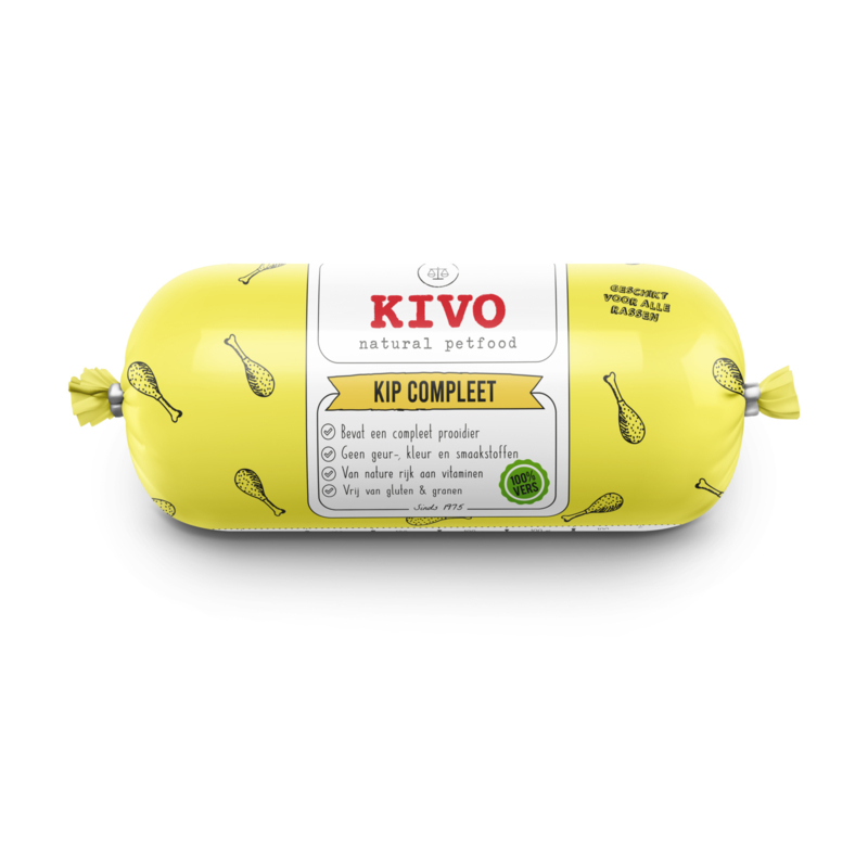 Kivo kip een maaltijd die bestaat uit 1 diersoort namelijk 100% verse kip en kan ingezet worden als eliminatiedieet. Geschikt voor pups vanaf 14 weken en volwassen honden.
