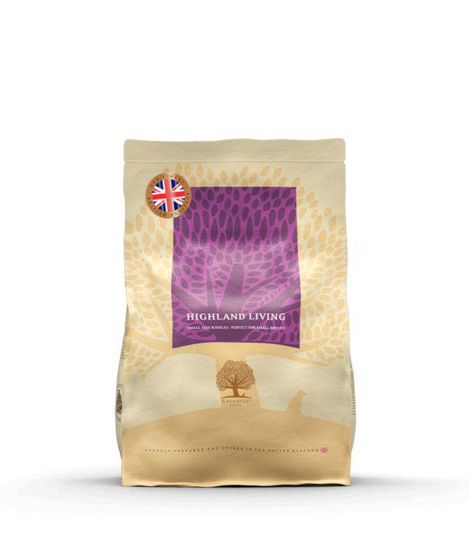 Essential Foods highland living is een krokante brok speciaal ontwikkelt voor volwassen honden van alle rassen. Bereid met heerlijke en gezonde smaken uit de Schotse Hooglanden, zoals Norfolk Black kalkoen, Aberdeen Angus beef, wilde duif en patrijs en natuurlijk Schotse zalm.